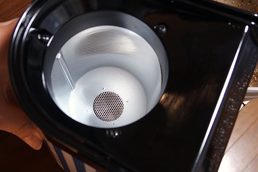 使用後。本体上部とカバーの内側に、少しコーンのカスが付着する程度でした