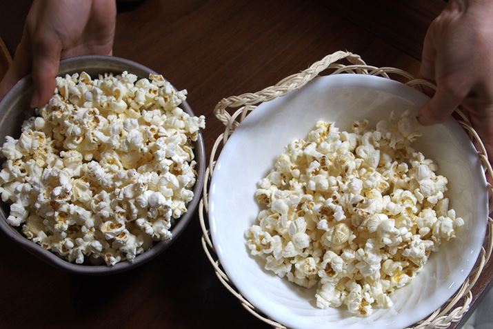 とはいえ、それよりも何よりも、パンパン!とはじけてモワ〜ッ!とポップコーンが湧き上がってくるさまがとにかく楽しい! カウチポテトのお供だけでなく、お誕生会やママ会、これから年末にかけてのパーティーでも活躍してくれそう。