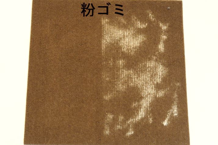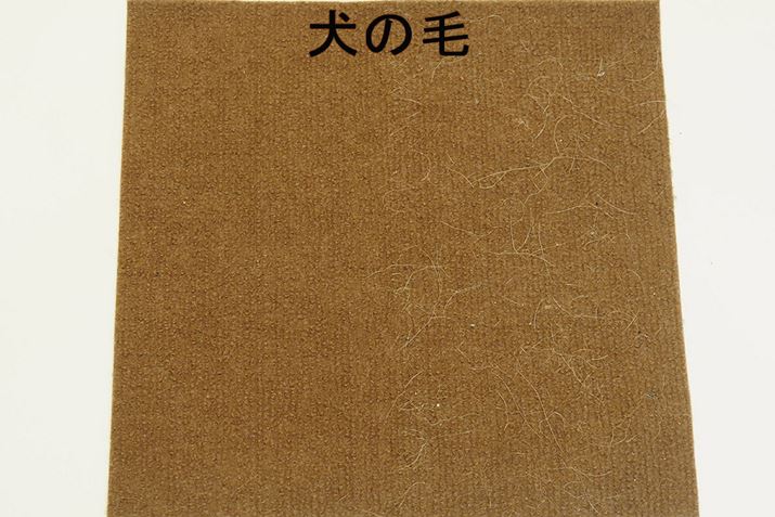 カーペットに犬の毛と粉ゴミをゴシゴシとこすりつけて、半分だけVC-MG910で一往復した。カーペットに絡みついた犬の毛も、繊維の間に入った粉ゴミもスッキリと吸引されている