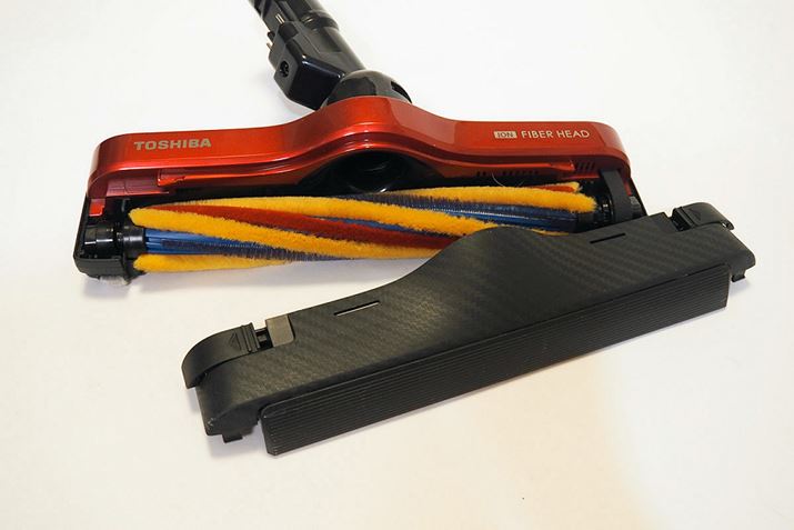 床用ヘッドは上部にふたつのスリットがあり、ここから舞い上がった空中のホコリも吸い込む。内部には汚れにくいフッ素加工されたブラシを搭載