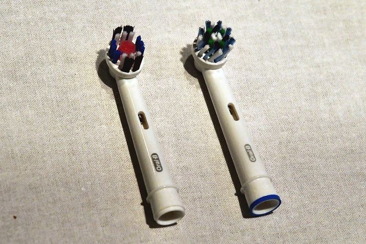 ジーニアス9000に付属するホワイトニングブラシ(写真左)とマルチアクションブラシ(写真右)。どちらも歯を包み込む丸形形状をしている