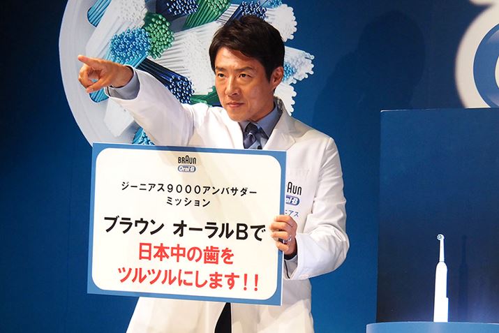 新製品発表会には元プロテニスプレーヤーでスポーツキャスターでもある松岡修造氏も登壇。松岡氏は「オーラルBは、僕が現役のプロテニスプレーヤー時代に、肩を痛めて腕が上がらなくなって使い始めたんです。僕はもともと歯は弱かったんですが、それから虫歯にはならなくなりました。アスリートにとって歯は重要ですから、本当にありがたい」とコメント。さらに、会場で新モデルのジーニアス9000を実際に使用し「とにかく一回オーラルBを体験してほしい! このツルツル感はスゴイから!」と興奮した様子でコメントした。また、発表会後半ではオーラルBに関係したクイズに全問正解し、その特典として「ジーニアス9000アンバサダー」に就任した。