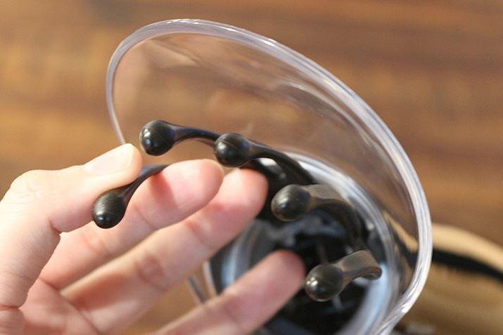 「かっさアタッチメント」のマッサージ部は先端に丸みがあり、しなりがある素材を使用しているので、正しく使用すれば頭皮を傷つける心配はなし