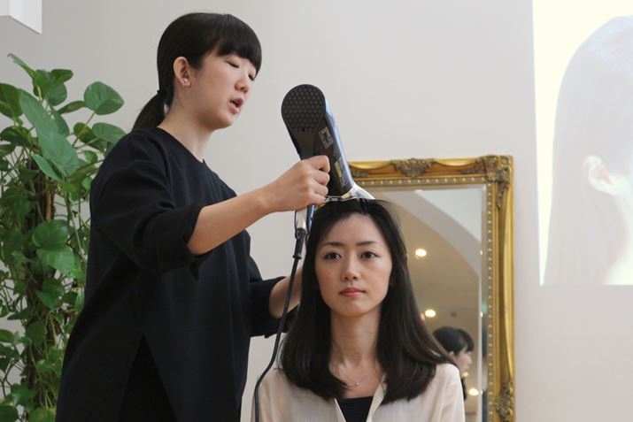 発表会では、トータルビューティサロン「uka」ヘッドセラピストの塩澤直子氏による「IB-GX9K」を使ったスカルプケアのデモンストレーションも行われました。塩澤氏によると、頭皮は顔のTゾーンより皮脂腺が多く、また頭髪に覆われているため風が通りにくく、蒸れて皮脂や汚れが残りやすいそう。加齢や紫外線などによるダメージで乾燥したり、ストレスなどで凝り固まりやすくなるとのこと。しかも頭頂部には筋肉がないことから、普段の生活では動かしにくいため、マッサージなどの積極的なケアが必要だそうです。