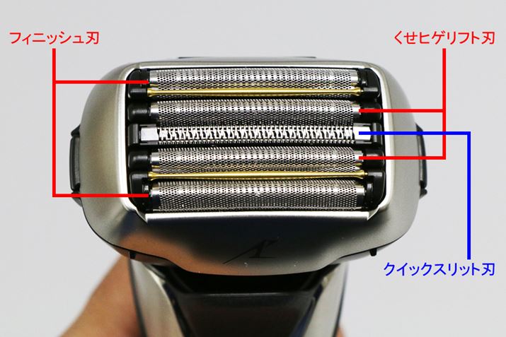 肌に接触する面積が広いほうが、1回の動きでたくさん剃れそうなことは想像できますね。また、新モデルの外刃は3種類の刃が上下対象に配置されているので、シェーバーを往復させた時にどちらの方向でも同じ剃り味が期待できます