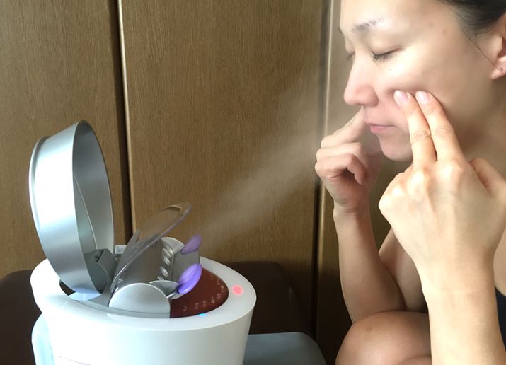 続いて、「冷ミスト」が入るコースに挑戦。筆者が最も気になる「皮脂ケアコース」をチョイスしました。皮脂ケアコースは、トータル13分と長め。温スチームと冷ミストを交互に当てることで毛穴を引き締め、メイクのり・持ちをアップさせることを目指します。
