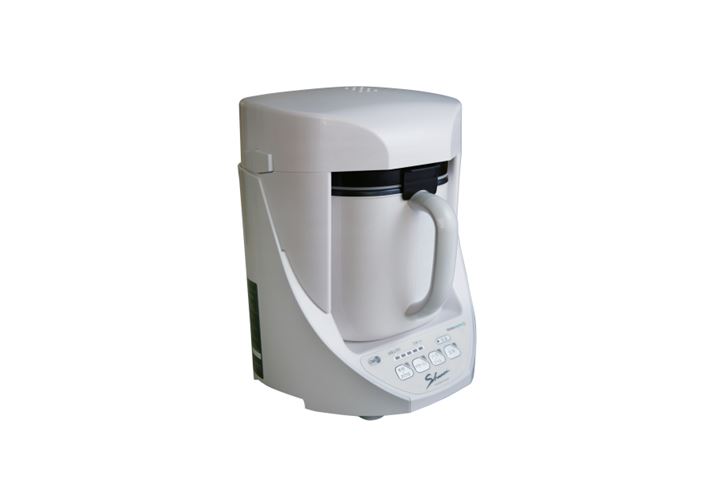 切った食材と水分を容器の中に入れ本体にセットするだけで、スープやジャムなどが作れる万能調理器具「「Shunsai〜旬彩〜 YE-CM61W」」(以下、Shunsai YE-CM61W)。本体には、「煮物・おかゆ」「ポタージュ」「ソース・ジャム」「豆乳」4つの調理メニューボタンが用意されています。スゴイのは、ざっくり切った食材を容器内に装着するカッターで細かくカットできること。選んだ調理メニューボタンによってそれぞれ刃の回転速度や温度調整/時間が設定されており、スタートしたらあとは自動でポタージュやトムヤンクンといったスープメニューから肉じゃがやカレーといった煮込み料理、またジャムやソースまで調理してくれます。実は同社はモーターの老舗。ペースト状のものから固形物の調理までも1台で可能にしているのは、同社独自開発のモーターと優れた制御技術によるものなのです。