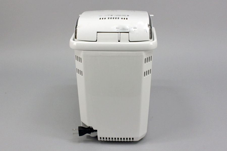 さて、いよいよ初めての「おうちパン」にチャレンジしていきたいと思います。箱から取り出した本体の大きさは22.5(幅)×34.5(高さ)×31.5(奥行)mmで、電気ポットくらい。ホームベーカリーの一般的なサイズですよね。1人暮らしワンルームの狭いキッチンなどでは、置き場を工夫しなくてはならないかもしれませんが、一般的な家庭のキッチンであれば設置にはそこまで苦労しなさそうです。つるつるしたホワイトの本体は、他の調理家電と並べてもなじみやすそうで好印象です。