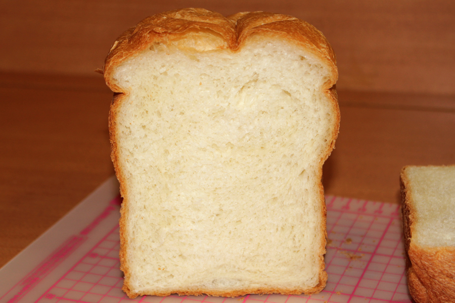 約4時間後、今回も無事にできあがりました。切ってみると……こちらもふわふわです。食べてみましょう。