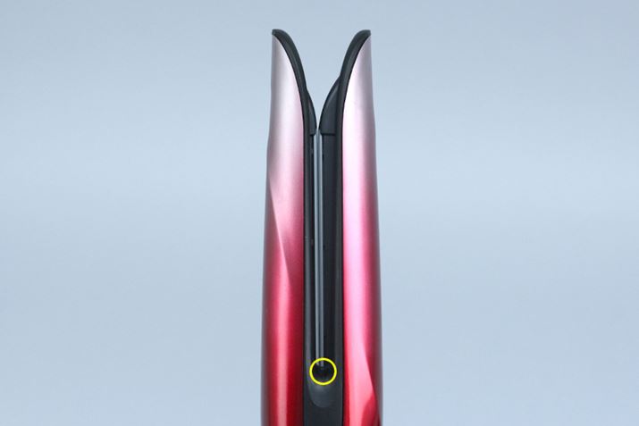 使用時に高温になるプレート部は本体の内側にあるので、肌に直接触れる心配が少なく安心。プレートの両脇に髪のキューティクルを保護するといわれるマイナスイオン吹き出し口(丸で囲った部分)を搭載。毎日髪を巻きたいけど、傷むのが心配な女性にとっては、ちょっとした安心材料と言えそうですね