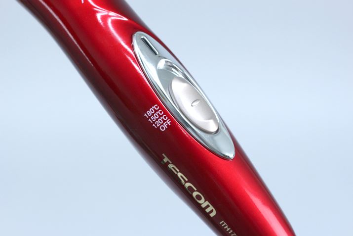 プレートの温度は120℃、150℃、180℃の3段階で調整可能。1分ほどで設定温度に達します。温度が低い順に、細い髪、普通の髪、太くしっかりした髪に向いているそう
