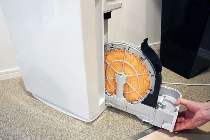 加湿フィルターや水トレーもストリーマ照射で除菌されるので、清潔も保持しやすい。また、加湿フィルターは水に直接つけない水車式となっています