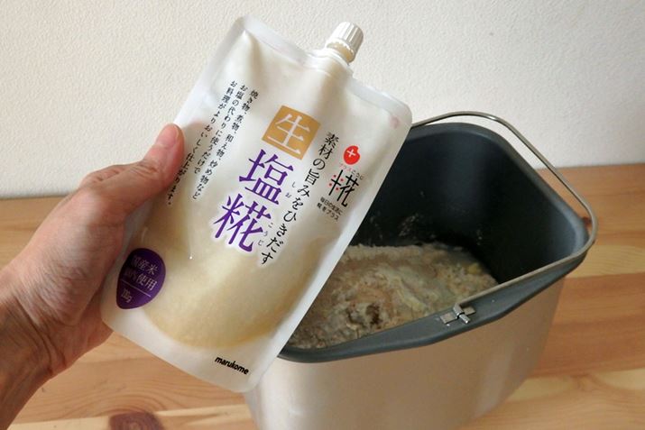 最初にトライしたのは、塩糀パン。塩糀を生地に練り込むことで、パンがふっくらとふくらみ軽い食感になるそう。なお、塩糀はマルコメ「生塩糀」が推奨されています。