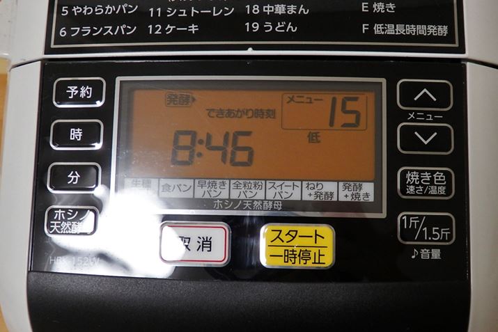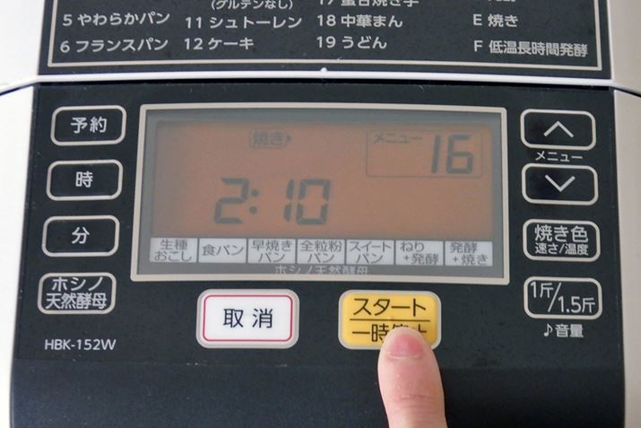 食パンのメニュー番号を設定し、調理スタート! ちなみに、パンの焼き色は「うすめ」「ふつう」「こいめ」を選べます
