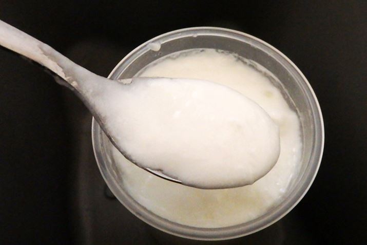 24時間発酵させた直後はやわらかなヨーグルトといった感じで、カスピ海ヨーグルトの特徴である“ねばり”がありません