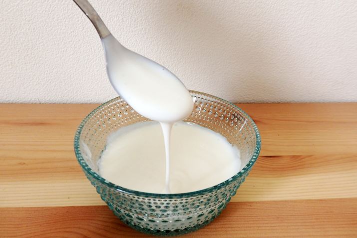 冷蔵庫で4時間冷やしてみたところ、見事、カスピ海ヨーグルト特有のねばりが! 種としたカスピ海ヨーグルトに比べるととろみがあるものの、酸味が抑えられてまろやかになった印象です。付属の容器を使った場合、1回でできる量は200ml程度ですが、500mlの牛乳パックを利用してたくさんの量を作ることも可能