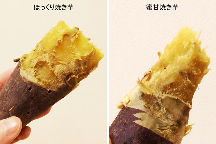 「ほっくり焼き芋」はホクホクとしてさつまいもの繊維質が感じられる食べごたえのあるオーソドックスな仕上がりだったのに対し、「蜜甘焼き芋」は甘みが強く、ねっとりとした食感でスイートポテトのよう。同じさつまいもで作った焼き芋とは思えません!