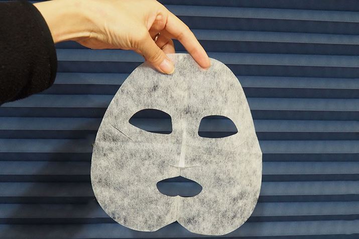 3枚付属するシートマスク。非常に薄いですが、水を吸収するとふくらみ、表面はヌルヌルしたジェルのような質感になります