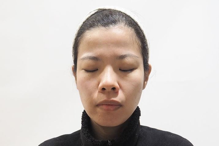 右側だけ「EH-SG90」で炭酸と保湿ケアをしたところ。右だけ、口のほうれい線があきらかに薄くなっているのがわかります。また、目の下のクマも薄くなっているような