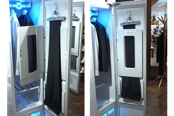 韓国ではすでに発売を開始していたLG Styler。洗濯機の横だけではなく、寝室のクローゼットに組み込むように設置しても違和感のない高級感のあるデザイン。日本での販売価格は228,000円(税別)で、蔦屋家電店頭とオンラインショップで販売する