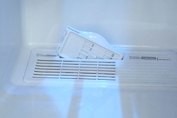 ちょっと面白いのが、スチーム吹き出し部に香りのあるアロマシートを設置し、衣類に香りもつけられること。LG Styler専用のアロマシートも販売されるが、自分でコットンに香水などの香りをつけたものを設置することもできる。