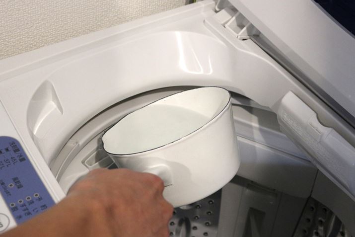 価格.com:お湯が洗浄力を高めてくれるんですね。漂白剤は、どのくらいの量を入れるのですか?