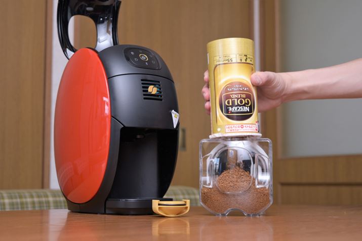 使用するコーヒー粉は、「ネスカフェ ゴールドブレンド」「ネスカフェ 香味焙煎」といったつめかえ用「エコ&システムパック」。独自の「挽き豆包み製法」によって淹れたての香りと味わいを実現しており、ネスレはこの製法で作られたコーヒーを、インスタントでもレギュラーでもない新ジャンル「レギュラーソリュブルコーヒー」として定義している