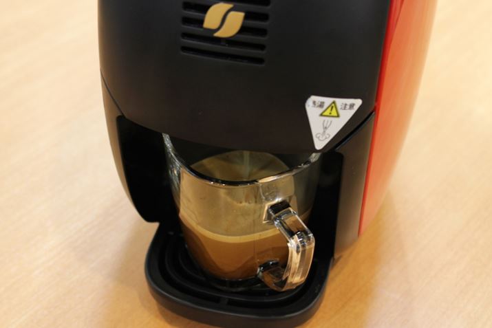 ブ〜ンという予想以上に大きな作動音とともに抽出が始まり、ものの1分程度で本格カフェメニューができあがる