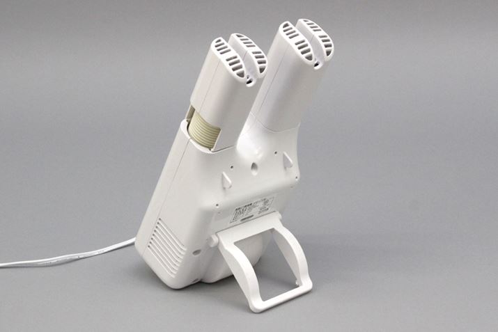ノズルの先端はふた股に分かれていて、2足を同時に乾燥・脱臭することもできるようになっています。さすがにややパワーは落ちるものの、温風をあてておくだけでも靴が乾くまでの時間は早くなるので効果的です