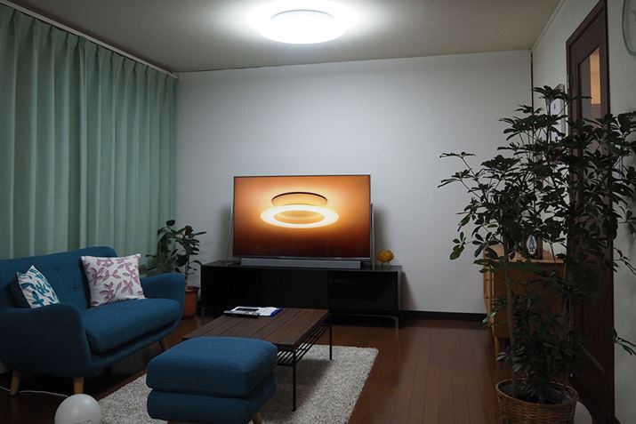 上が「シアター」、下が「勉強」と、シーンにあわせた明かり設定を切り替えてみた。同じ室内なのに、雰囲気がガラリと変わる