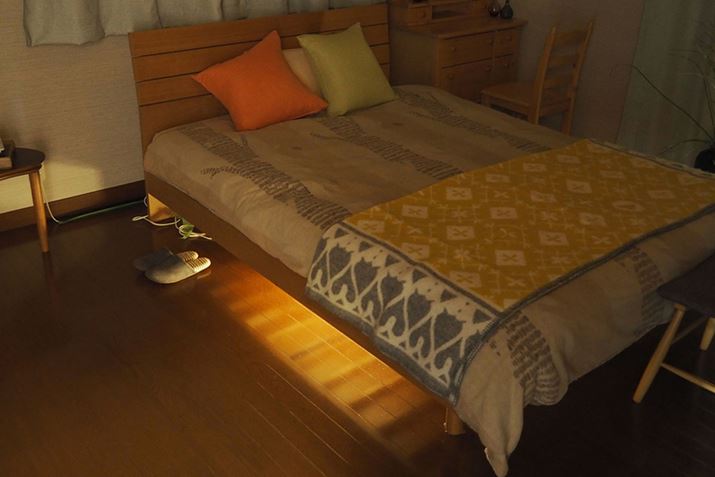 夜中にトイレなどで起きやすい人の場合は、ベッドの下に間接照明を設置するのがおススメだという。ラインライトは固定タイプの照明ではないので、手軽に位置の変更ができるのも魅力