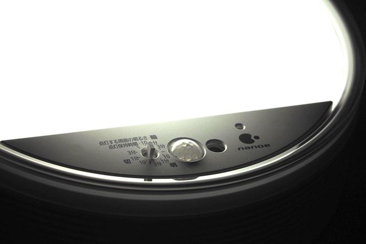 ナノイー機能のほか、人感センサーも搭載。スイッチを入れっぱなしでも、人の有無を感知して自動的に明かりをオンオフしてくれる。消灯後も一定時間はナノイーを放出し、脱臭や除菌を続けてくれる