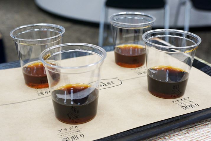 浅煎りは豆が持つ香りが味わえ、深煎りは苦味やコクが増し、立体的な味わいが楽しめるようになるそう。実際にエチオピアとブラジルの生豆を浅煎り、深煎りしたコーヒーをいただきましたが、想像を超える変化に驚きました。たとえば、浅煎りの場合はブラジルよりもエチオピアのほうが酸味がありフルーティーな感じでしたが、深煎りになると苦味はエチオピアのほうが強い印象。異なる豆の味を楽しむだけでなく、1つの豆で変化する味を堪能するのもオツですね