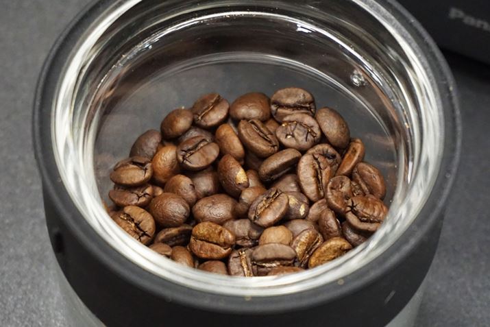 生豆をAE-NR01にセット。一度に焙煎できる量は50gで、その分量で約4杯分のコーヒーが入れられるそうです