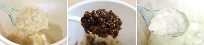 「糀美人」では、塩糀や醤油糀、ヨーグルトといった発酵食品も作ることができます。調理容器は2つ付属するので、「甘い系」「しょっぱい系」で使用する容器を分ければ、におい移りも気にならないでしょう。どれも混ぜて本体にセットするだけなので、超簡単。ただし、塩糀としょうゆ糀は甘酒と同様、熟成中何度か混ぜる必要があります。