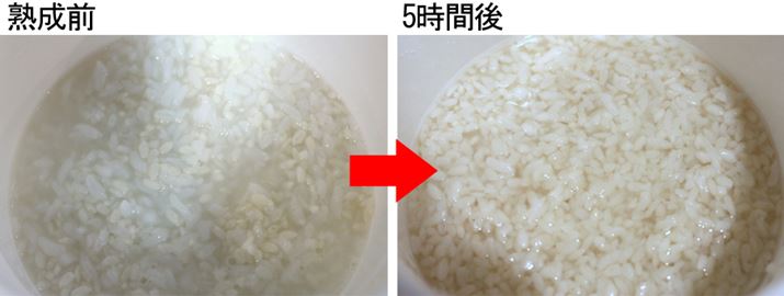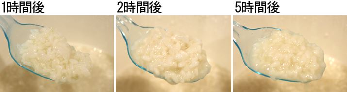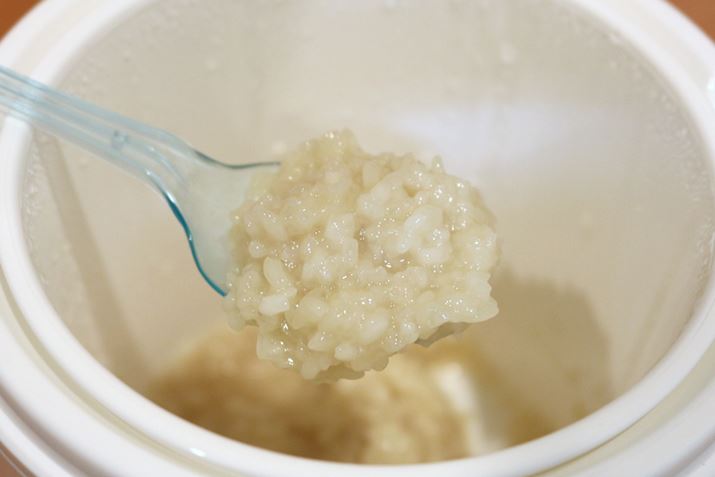 8時間熟成した甘酒は筆者にとっては甘すぎたので、今回はタイマーを5時間に設定。5時間放置した材料は、熟成前に比べ米粒がふっくらとした感じ