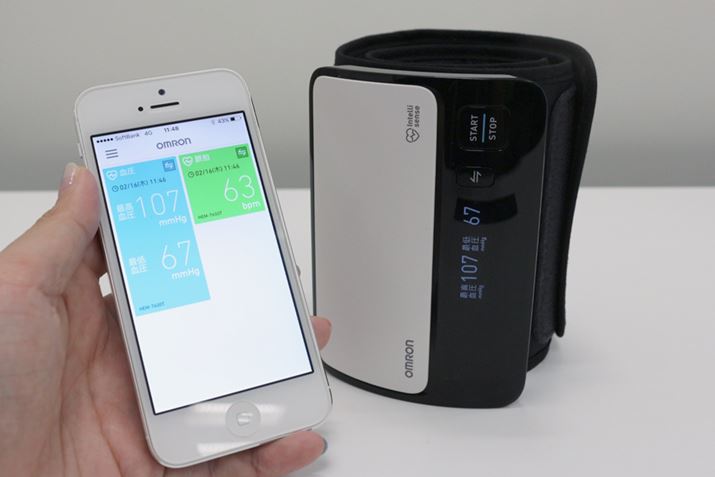 「HEM-7600T」にはBluetooth(Bluetooth Low Energy)通信技術が搭載されているため、測定データをデバイスに転送し、専用アプリで管理することもできる