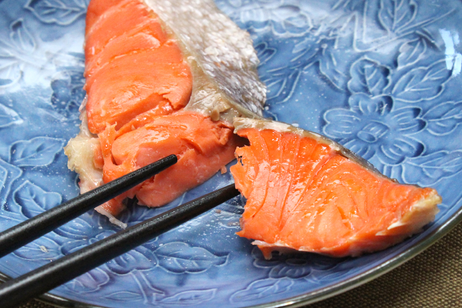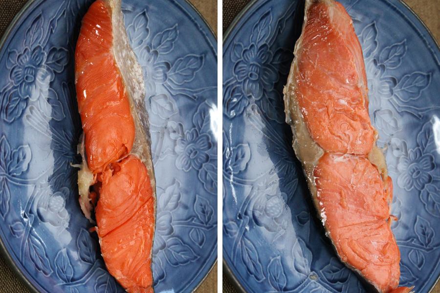鮭は1度も裏返しませんでしたが、表面(左)も裏面(右)もちゃんと焼けました