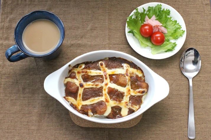 2日目のカレーを使った簡単焼きカレーの完成です。朝からイチロー並みにカレーを食べられる。ST-G111は庫内が広々としているので、いろいろな料理がしやすいのがうれしいところ
