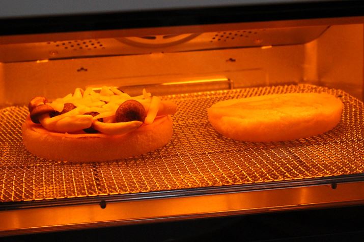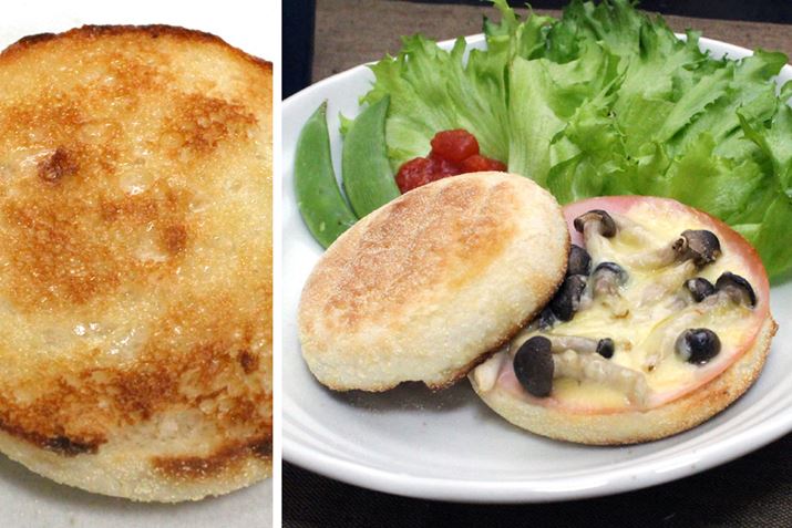 しめじのソテーがあまっていたので、筆者の大好きなイングリッシュマフィンに乗せて焼いてしまうことに。温度を230℃に設定し、コンベクションモードで5分焼きました