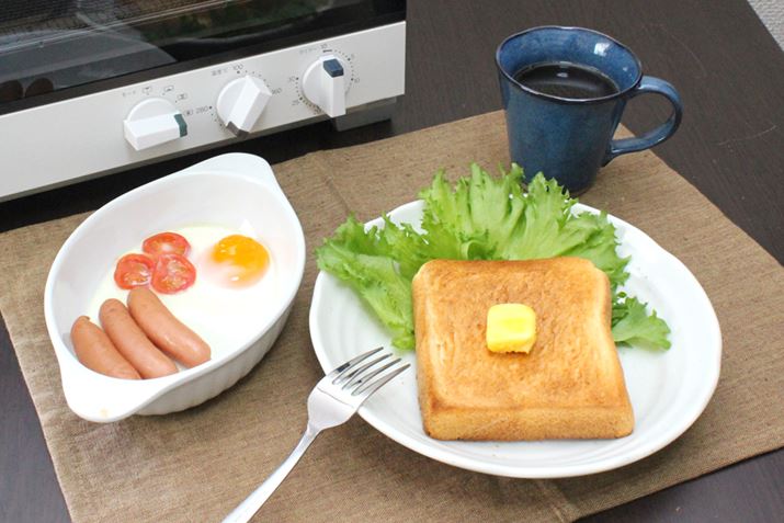 しかも、おかずは耐熱皿のままで食べれば温かいまま味わえます。できあがるのも早いですが、同時に後片付けも楽チン。もちろん、同時調理をしてもトーストの焼き上がりは高クオリティ。表面はサクッと、中身はモチッとふんわりをキープしてくれます。