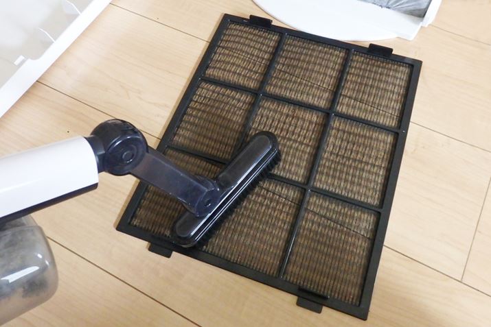 フィルターの手入れは月に1回のペースで実施。プレフィルターに付着した汚れを、掃除機で吸い取りましょう。なお、集じんフィルターと活性炭フィルターは約2年を目安に交換する仕様となっているため、手入れは不要