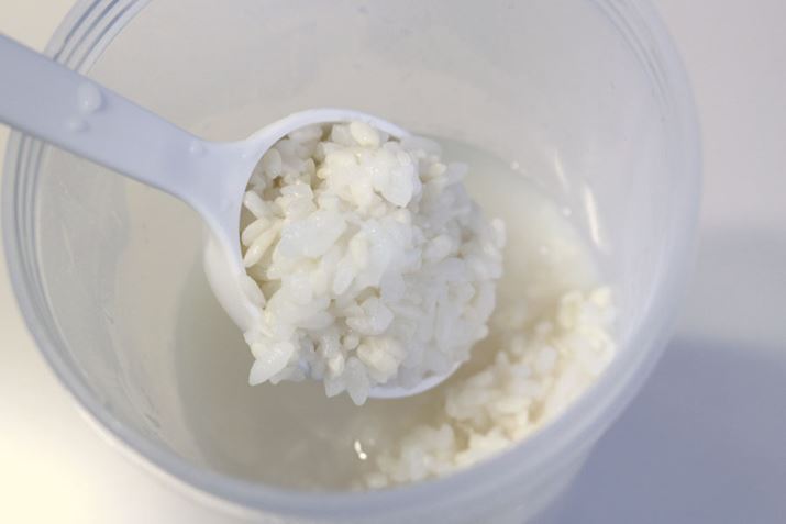 専用容器は口が狭く深さがあるため、ごはんと乾燥米糀をまんべんなく混ぜるのがやや難しいです。口の広い容器で混ぜ合わせてから入れ替えたほうがスムーズかも