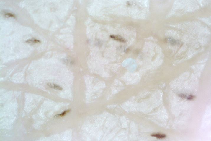 ここで気になったのが、「アイケアレーザー」は本当に「フラクショナルレーザー」と同様の作用があるか、ということ。前述のとおり、「フラクショナルレーザー」は肌に細かな穴を開けることで美肌をうながすということなので、「アイケアレーザー」使用後に肌をマイクロスコープで確認してみました。すると、元々シミがあった場所には、下の写真のような細かな赤い傷ができていました。