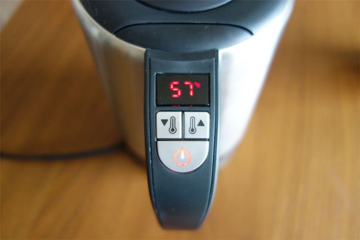 電源ボタンを入れると、温度の表示はいったんオフに。水の温度が30度になると、そこから100度の間で1度刻みに現在の温度を表示してくれます