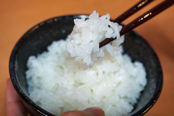 カレーライスに合うということは、液体っぽい卵かけごはんやお茶漬けにもマッチするはず! 想像どおり、ごはんがサラサラと口から喉を通過し、弾力のある粒感を楽しめます。“ごはんは飲み物”と言っちゃいそうなほどの食感