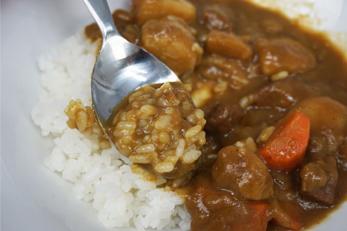 バルミューダ代表取締役社長の寺尾さんが絶賛されていたカレーライスにも挑戦してみました。ごはんが塊にならず、自然とほぐれるので、1粒ずつにカレーがコーティングされる印象。これはたしかにうまい!