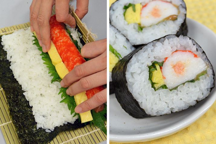 炊きたてごはんを食べた時から寿司めしに近い粒感だと思っていたので、酢を加えて太巻きにしてみました。ほんのり温かい状態のごはんで試しましたが、粒のほぐれ感は完璧。ごはんを冷ます、ほぐれるようにしゃもじで混ぜる手間がいらないので、気軽に巻物にトライできます。すのこを使わず、手巻き寿司にするのもあり