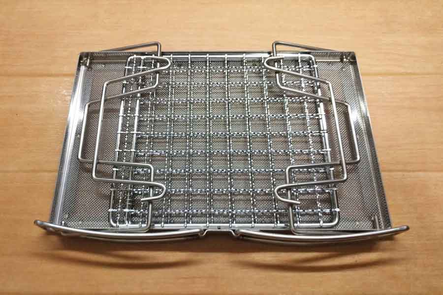 焼き網は山型とフラットの2通りのセットの仕方があるので、いろいろな物が焼けます。