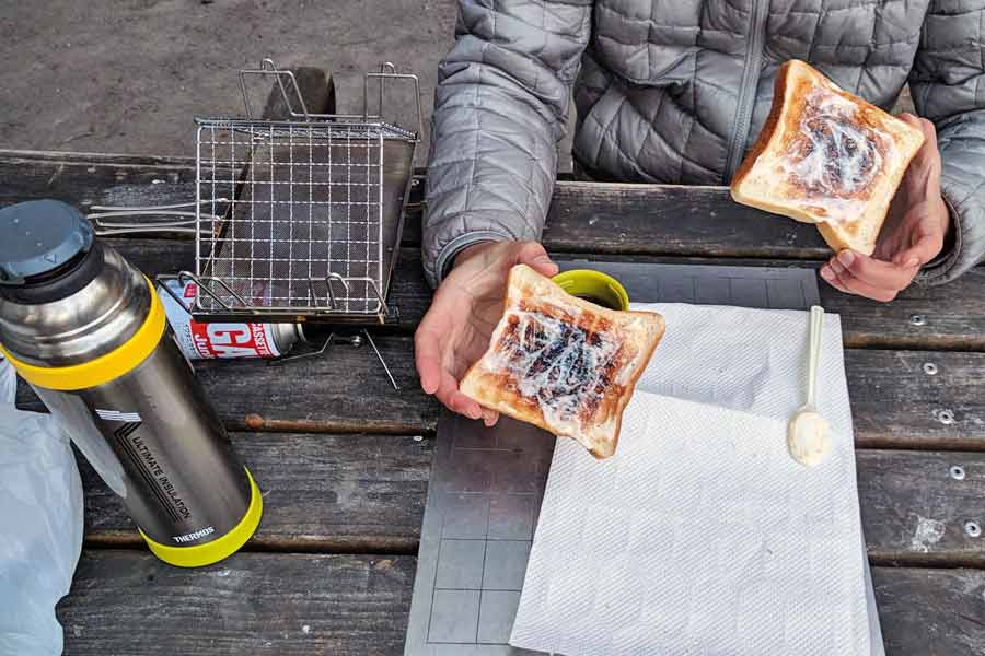 小型のバーナー(イワタニ ジュニアバーナー)を使ってトーストを焼いてみました